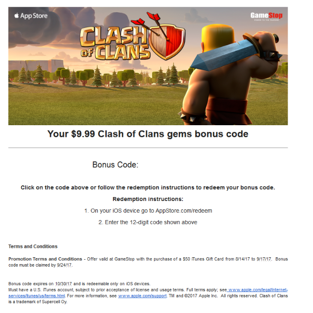 Google play gift card clash of clans bonus