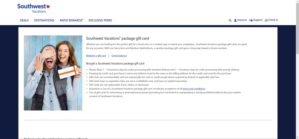 Travel Gift Cards | Southwest Airlines Give the gift of travel with a Southwest gift card. Choose a custom amount, purchase online, and come back to check balances. Gift cards never expire.